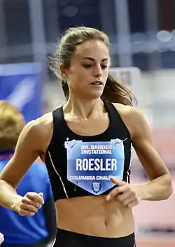 Roesler ran 1:59.04 and was runner up in the 800 metres at the 2014 USA Outdoor Track and Field Championships.[10] She was again runner up in the 800 metres at the 2016 USA Indoor Track and Field Championships and ran 2:00.80 to place 4th in the 2016 IAAF World Indoor Championships.[11][12] Roesler ran 2:03.55 and was 21st place in the 800 metres at the 2016 United States Olympic Trials.[13] Roesler ran 2:01.10 to place 7th at 2017 USA Outdoor Track and Field Championships.[14] Roesler ran 2:00.84 to place 9th at 2018 USA Outdoor Track and Field Championships.[15]