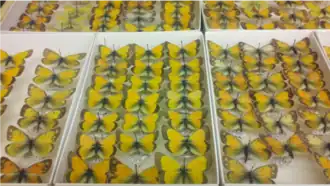 Her more recent research has focused insect systems where historical data can be used to test predictions of responses to climate change. In particular, she focuses on the fitness implications of climate change for a species, given its biological and ecological features, which are often-overlooked components of climate change research. Her work has been instrumental in clarifying the performance and fitness consequences of thermal stress for ectotherm species, and brought attention to the particular vulnerability of mid-latitude species to climate change.[9] Buckley has also analyzed the influence of a number of variables on a given species' ability to respond to climate change, especially thermal developmental plasticity. Further, she has drawn important connections between developmental plasticity and maladaptive phenological shifts that may reduce fitness and disrupt ecological interactions, as well as the role of plasticity in attenuating climate change impacts.[10][11] Her primary insect study systems are Colias butterflies and grasshopper communities in Colorado.[1]