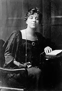 Alma-Tadema, who had socialist leanings, travelled to America in 1907 to tour the country widely.[3] She gave a series of readings on the "Meaning of Happiness", which proved exceedingly popular.[3] She also spoke on the plight of the divided Poland and asked her audience to express their feelings for this cause.[13][14]