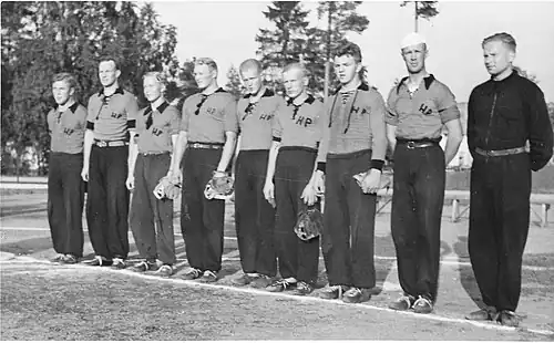 Haminan Palloilijat baseball national championship team in 1939 with Lauri Toikka second from the right.