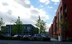 Laurieston is a core part of the Gorbals. Compared to other neighbourhoods in the vicinity, many of its 19th century buildings escaped the slum clearances of the 1960s and 70s, particularly in the north of the district close to the river. However the tenements further south were swept away to be replaced by four black 'slab' tower blocks (which actually consisted of four pairs of towers with separate entrances, joined together externally). Whilst the blocks (Norfolk Court and Stirlingfauld Place) solved a short term housing need and were popular with some residents due to their proximity to central Glasgow, they were expensive to maintain and became increasingly undesirable in terms of their build quality and aesthetic appeal. Over a period of several years in the early 21st century the residents were relocated and the towers demolished. A further redevelopment of modern low rise apartments is now underway.[1]