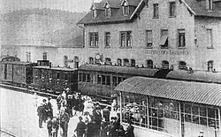 In 1913 a wooden hut was built between the signal box and the track supervisor's office (Bahnmeisterei). A year later, at the outbreak of the First World War, the military authorities operated troop trains over the line every 90 minutes. It was said that a lavatory with a capacity for 100 people had been built behind the hut for this operation.[13]