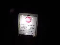 The air temperature at the mouth of the cave ranges from about 32 degrees to around 45 degrees Fahrenheit (-1 degrees to around 7 degrees Celsius) depending on the time of year.[2] Inside the cave, it is a constant 42 degrees (5.6 degrees Celsius). As a result, the Forest Service strongly recommends that visitors wear a warm jacket while exploring the cave. Lanterns can be rented at the visitor center above the cave entrance. Personal lanterns are also permitted; however, in order to protect the cave's fragile environment, they cannot have glass globes or use kerosene or white gas. Battery powered lights are best, but they must provide reliable illumination for at least one hour.[4]