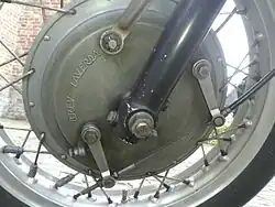 The 750SF was introduced in 1970 (SF standing for Super Freni eng. Super Brakes) replacing the S model.[3] It used a new frame[1] and was fitted with a 230 mm (9.1 in) twin leading shoe designed by Francesco Laverda[9] rather than the Grimeca item previously used. A balance-pipe was fitted to the exhaust downpipes.[1] The machines were available in a wide range of metallic colours.[11]