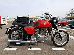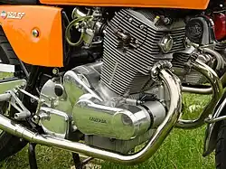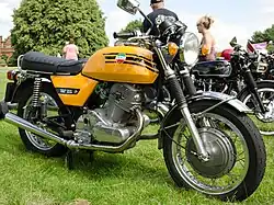The Laverda 750 is a 744 cc (45.4 cu in) air cooled SOHC 4 stroke parallel twin motorcycle produced by the Italian manufacturer Laverda from 1968 to 1976. Developed from the company's 650, the engine's design drew heavily from the Honda CB77. Around 18,000 machines were produced.[4]