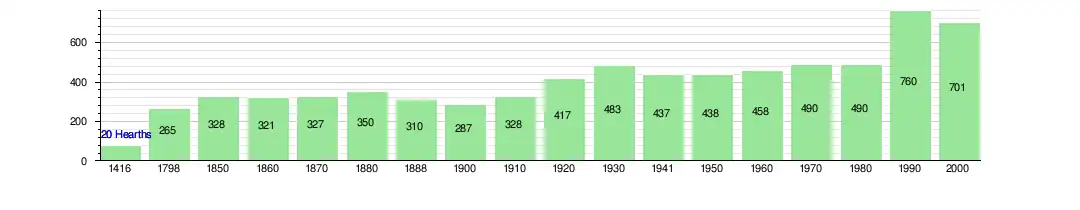 As of 2000, there were 231 private households in the municipality, and an average of 2.6 persons per household.[9] There were 63 households that consist of only one person and 25 households with five or more people. Out of a total of 240 households that answered this question, 26.3% were households made up of just one person. Of the rest of the households, there are 58 married couples without children, 94 married couples with children There were 14 single parents with a child or children. There were 2 households that were made up of unrelated people and 9 households that were made up of some sort of institution or another collective housing.[10]