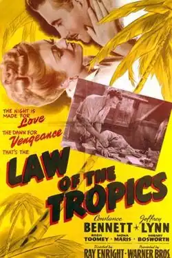 Law of the Tropics is a 1941 American drama film directed by Ray Enright and starring Constance Bennett, Jeffrey Lynn and Regis Toomey. By the time Bennett made the film, her career was in steep decline.[1] It was produced and distributed by Warner Brothers.[2]