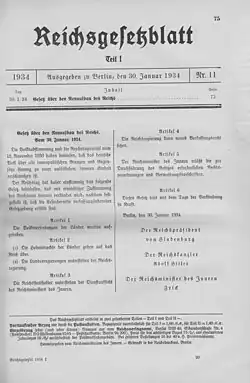 - ^ "Law on the Reconstruction of the Reich". Retrieved 14 February 2023.