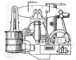 In 1861-62 Lawrence & Foulks completed at least three screw steamers for U.S. companies operating in China: Flambeau, Kiang-Tsze and Sze-Chuen. The latter two were duly despatched to China but Flambeau was purchased by the U.S. Navy to serve as the gunboat USS Flambeau.[22][23][24] The company also completed a number of screw steamers for domestic American service during the war, including Isaac Smith, D. S. Miller and John L. Hasbrouck, all for Hudson River service. After a few months on the Hudson, Isaac Smith, like Flambeau, was requisitioned by the Navy for conversion into a gunboat.[22] All the above-mentioned screw steamers were powered by beam-propeller engines[22]—a transitional technology that mated the old, slow-rpm beam engine with the screw propeller by mounting the engine athwartships and gearing it up (at a ratio of one to three or more) to the propeller shaft.[25]