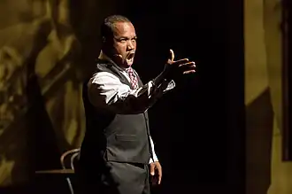 Lawrence Brownlee (born November 24, 1972) is an American operatic tenor particularly associated with the bel canto repertoire. Describing his voice, Speight Jenkins, general director of the Seattle Opera, said: "There are other singers that sing this repertory very well, but I don't think anyone else has quite as beautiful a sound and as rounded a tone," and praise his "incredible top notes", adding about his high F (F5) in "Credeasi, misera": "With him it's not a scream, it's a beautiful sound."[1] Mezzo-soprano Joyce DiDonato adds: "He is always in service of the music. His natural instrument is just incredibly beautiful. The word 'honey' comes to mind. He also has technical prowess and agility."[1]