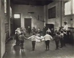 The settlement maintained a library; kindergarten; playground; gymnasium; classes in chair caning, bent iron work, knife work, carpentry, drawing, athletics, embroidery, knitting, crocheting, cooking, millinery, clay modeling, arts and crafts; clubs with various interests, dramatic, debating, parliamentary drill, citizenship, story telling; game and pool rooms; dances; entertainments, concerts and lectures; and mothers' club. Summer work included a roof and backyard playground.[3]