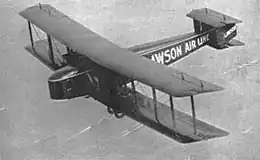 The Lawson Air Line Company designed and built a series of large biplane airliners for use on its planned airline routes. The initial Lawson "Aerial Transport" Lawson C1 or T-1 was built early in 1919 to demonstrate that a large commercial passenger plane could be built. The L-1 was a single pilot, 10 passenger biplane with twin Liberty 400 hp pusher engines. It was followed by the Lawson C.2 or L-2. The L-2 was a tractor biplane also with 400 hp engines, capable of carrying 26 passengers, and piloted by two pilots, with differential controls.[3]