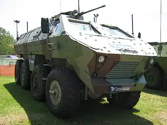 Lazar is a vehicle conceived for use in urban and rural anti-infantry patrol and transport role, a supplementary vehicle meant to prevent exposure of even basic infantry units to enemy fire as well as to run support of heavier vehicles in convoy situations. The chassis is started as a simple redesign of the TAM-150 truck but evolved to include a completely modified hull, 4×4 and 8×8 configuration, added armor and dozens of structural improvements. Special attention was given to a high acceleration rate, stability (due to high center of gravity), hardiness and reliability in many types of environments (fire, snow, ice, rain, mud etc.). During testing, the vehicle outperformed every parameter except the weight requirement, which was exceeded in full armor and armament load-out, although the report excused this by saying that the extra weight does not degrade vehicle function.[1]