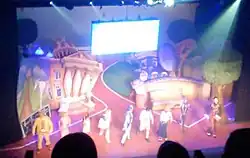 Nickelodeon produced a stage show titled LazyTown Live! in 2005. It debuted at Nickelodeon Suites Resort on 6 August.[57] A modified version toured the United Kingdom and Ireland between October 2007 and August 2008. It introduced a new cast to the United Kingdom, including Julian Essex-Spurrier as Sportacus.[18][58][59]