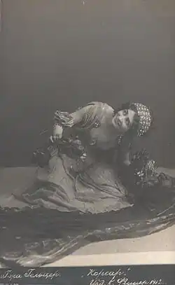 Petipa's final and most important revival of Le Corsaire premiered on 25 January [O.S. 13 January] 1899, at the Imperial Mariinsky Theatre. This production was mounted especially for the benefit performance of Pierina Legnani, Prima ballerina assoluta of the St. Petersburg Imperial Theatres. The Prima ballerina Olga Preobrajenskaya performed the role of Gulnare, and the Imperial Theatre's Premier danseur Pavel Gerdt performed the role of Conrad.