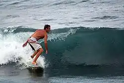 There are many hotels and restaurants which serve French, Continental, Creole and American dishes. There are also a couple of beaches: L'Autre Bord, a sea-grape shaded beach on the way into Le Moule, and Plage des Baies, about 1 km (0.62 mi) north, which forms a shallow bay ideal for swimmers.