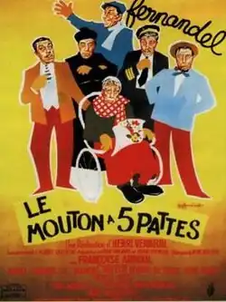 The Five-Legged Sheep (French: Le Mouton à cinq pattes) is a 1954 French comedy film directed by Henri Verneuil. It won the Golden Leopard at the Locarno International Film Festival[2] and was nominated for the Academy Award for Best Story.