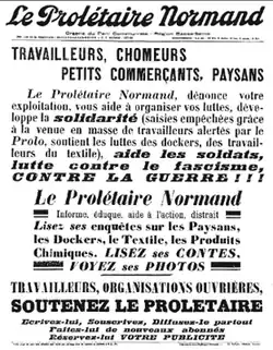 Le Prolétaire normand ('The Norman Proletarian') was a communist weekly newspaper published from Sotteville-les-Rouen, France.[1] The newspaper was published between 1933 and 1937.[2] It had a local edition based in Le Havre.[3]