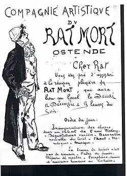 In the late 1890s, a group of Belgian writers gathered at the Rat Mort to enjoy themselves, and had such a good time that upon returning to Belgium some of them organized the first Dead Rat Ball in 1898, Le Bal du Rat mort, an annual philanthropic costume ball that continues in the 21st century.[14]
