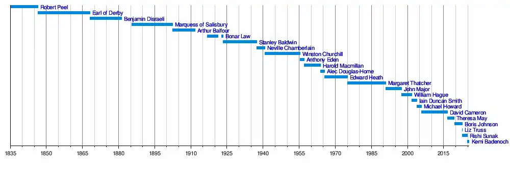 - Bonar Law: 13 November 1911 – 21 March 1921, elected at a party meeting (overall leader from 1916)