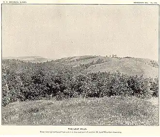 The Leaf Hills Moraines, sometimes called the Leaf Mountains, are a range of hills in west-central Minnesota. The land does not exhibit many characteristics of mountains, and rises typically to a height of 100 to 300 feet (30 to 91 m) above the surrounding farmland, occasionally reaching higher than 350 feet (107 m). The name of this range of hills is translated from the Ojibwe Gaaskibag-wajiwan, which was interpreted by Gilfillan as “Rustling Leaf Mountains.” The name is also shared by Leaf Mountain Township, the two Leaf Lakes ("Gaaskibag-wajiwi-zaaga'iganan"), and the Leaf River ("Gaaskibag-wajiwi-ziibi"), all named for the hills.[1] In turn, the hills in Ojibwe are named after Inspiration Peak ("Gaaskibag-wajiw"), a prominent hill in this area.