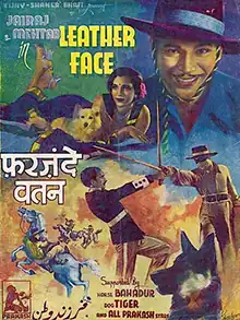 Leather Face, also known as Farzand-e-Watan, is a 1939 Indian Hindi-language action film produced and directed by Vijay Bhatt for his production company Prakash Pictures.[1][2] Bhatt cast the young Mahjabeen, then six years, who went on to become the famous actress, Meena Kumari.[3] The story writers were Batuk Bhatt and Sampatlal Srivastava. The music direction was by Lallubhai Nayak and Shankar Rao Vyas with the lyrics written by Pandit Anuj. It starred P. Jairaj, Mehtab, Jal Writer, Shirin, M. Zahur, Lallubhai Nayak, Bholaram and Baby Mahjabeen (Meena Kumari).[4]