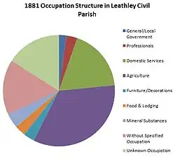 Before the industrial revolution Leathley Civil Parish was focused on agricultural industry with agriculture accounting for over 73 per cent of employment of males aged over 20 in 1831.[13] In 1881, occupation figures again show that agriculture was the parish's main occupation with around 34 per cent of all industry relating to agriculture.[14]