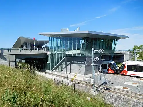 The stop is located under Booth Street in LeBreton Flats.[2] and opened on September 14, 2019.[3] It serves the redeveloped flats area, including the New Central Library, Chinatown, and Little Italy.