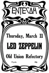 ![]() Poster for Led Zeppelin's concert at Southampton University, used to help promote its 1971 "Back to the Clubs" tour | |