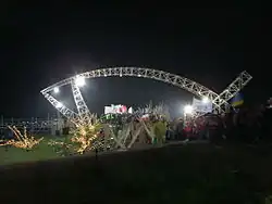 Lednica is a lake and surrounding protected landscape area located between Poznań and Gniezno in west-central Poland, within the Greater Poland Voivodeship. It is known for annual youth meetings that take place in early June. These religious events last for two days. The high point of the festival is a nocturnal walk under a massive steel fish structure - a symbol of Christianity.