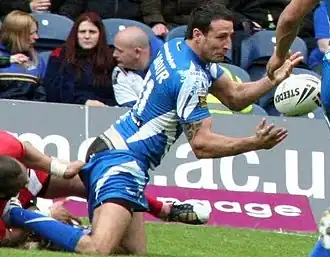 Lee Andrew Gilmour (born 12 March 1978) is an English assistant coach at Wakefield Trinity in the Super League and a former professional rugby league footballer. He played in the Super League for the Wigan Warriors (with whom he won 1998's Super League III), the Bradford Bulls, St Helens (with whom he won 2006's Super League XI), the Huddersfield Giants, Wakefield Trinity Wildcats and the Castleford Tigers. Gilmour represented Great Britain and Scotland at international level.[4][5]