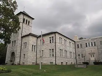 Lee High School was founded in 1851, marking the beginning of public secondary education in the town.[2] Prior to that and like in many New England villages, education beyond fundamental literacy, arithmetic and civics was provided by private academies to the children of families that could afford additional schooling. Through the years the high school occupied buildings at several locations, The impressive Hyde School was built for the high school in 1894 in the Romanesque Revival style. It still stands at 100 High Street as one of Lee's landmark buildings. In 1916 that building became home to Lee Central School, when the high school moved to another site. In 1962 Lee High School's current campus was established at 300 Greylock Street.[3] In the 2002–2003 school year, the Middle School moved to a shared campus with the high school.[4]