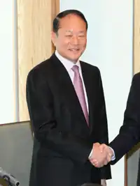 - He was criticized for making a jingoistic suggestion about marking the Taegeuk symbol on the food supplies for the 2011 Tōhoku earthquake and tsunami victims.[5]