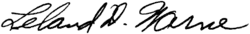 Leland DeWayne Warne (January 1, 1922 – March 8, 2002) was an American politician and rancher from South Dakota. Born in Pierre, he received a Bachelor of Arts from the University of South Dakota before serving in the United States Army for several years, where he fought in the European theatre of World War II and received both a Bronze Star Medal and Purple Heart. Warne was elected to the South Dakota Senate as a member of the Republican Party in 1952; he won re-election in 1954. He ran for the South Dakota House of Representatives in 1956, defeating the incumbent J. C. Noonan in a close race. Following his legislatorial stint, he bred horses on his ranch. In 1988, Warne was inducted into the South Dakota Hall of Fame. He died in Scottsdale, Arizona, in 2002 at the age of 80.