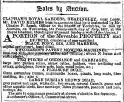 - ^ "Sale of the Leeds Public Gardens". Yorkshire Gazette. British Newspaper Archive. 30 December 1848. p. 6 col.5. Retrieved 12 February 2023.
