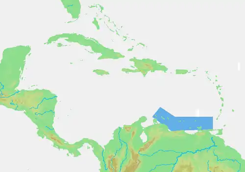 - ^ Also includes Aves Island, geographically in the Caribbean Sea but not a part of the Leeward Antilles.