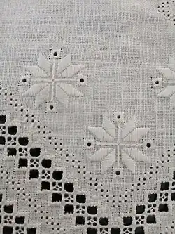 Lefkaritika or Lefkara Lace is a handmade lace from Pano Lefkara Cyprus.[1] Notable characteristics are the hemstitch, satin stitch fillings, needlepoint edgings, white, brown, ecru colours and geometric intricate patterns.[2] in 2009, this traditional craft of lace-making was inscribed on the Representative List of the Intangible Cultural Heritage.[1]