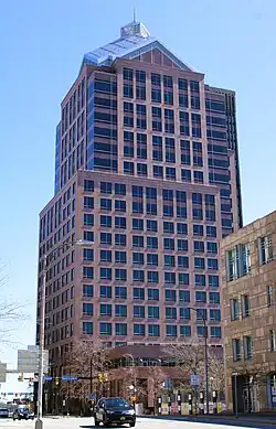 Legacy Tower (formerly Bausch & Lomb Place) is a skyscraper located in Rochester, New York. It is the second tallest building in Rochester, standing at 401 feet (122 meters) with 20 floors.[2] It was constructed in 1994, making it the latest skyscraper of Rochester, New York, and was the world headquarters for the Rochester-based eye care company Bausch & Lomb until 2014. When they moved out and sold it to 2 local developers, Robert C. Morgan & Cos and Buckingham Properties. That same year, the building was renamed Legacy for the legacy of Bausch and Lomb and the building's former owner Larry Glazer, and his wife Jane, both of whom died in a plane crash.[3] From November 2003 to November 2004, the number 150 was on the sides of the building, in celebration of the company's 150th anniversary.