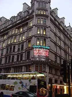 The West End production opened at the Savoy Theatre on January 13, 2010, following previews from December 5, 2009.[25][26] The original London cast included Sheridan Smith in the lead role of Elle Woods, with Duncan James, Alex Gaumond, Jill Halfpenny and Peter Davison.[27] In the London production, the lyrics to "Ireland" were changed.[28]