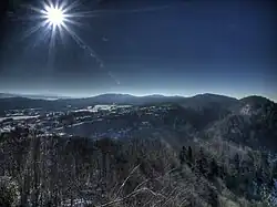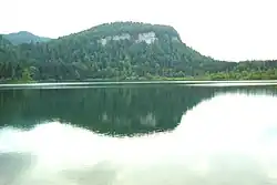 Some observers report having seen the horseman of Bonlieu booted, armed and helmeted, riding in the air on his white pony to fall down in the plain without touching it and to leave as quickly as lightning.[25] Others saw his horse alone, tied by the bridle to the steep rock of Magney like a rack. He was outside the rock, in the air, his hair bristling, his tail outstretched, waiting impatiently for his master to come and step over him so that he could start his races across the sky again as soon as possible.[26][27] He sometimes rested in the forest of La Chaux-du-Dombief.[27]