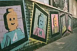 A 2011 exhibition titled Da Vinci, The Genius at the Frazier History Museum in Louisville, Kentucky attracted attention by having a Brick Art Mona Lisa replica constructed by Lego artist Brian Korte.[16] Lego builders such as Eric Harshbarger have made multiple replicas of Mona Lisa. Matching the approximate 21 by 30 inch size (535 x 760+ mm) of Leonardo's original[17] requires upwards of 5,000 standard Lego bricks, but replicas measuring 6 by 8 feet have been built, requiring more than 30,000 bricks.[18][19][20] The Little Artists (John Cake and Darren Neave) have created an entire Modern Art collection in Lego form. Their exhibition 'Art Craziest Nation' [21] was shown at the Walker Art Gallery in Liverpool, UK.