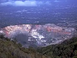 The Permanente Quarry and cement plant is in an unincorporated area of Santa Clara County, California, just west of Cupertino.[1] The limestone and aggregate mining operation and cement plant is owned by Lehigh Southwest Cement, a subsidiary of Heidelberg Cement. Limestone was mined beginning in 1902 but remained a small operation until 1939 when it was purchased by Henry J. Kaiser to supply the 5.5 million barrels of cement to build Shasta Dam. With increased production Kaiser supplied all of the cement used by the Navy in the Pacific Theater of World War 2. At 7 million barrels, it was more cement than the Shasta Dam project. Roughly 70 percent of the cement used in the communities of Santa Clara County was acquired from the cement plant.[2]