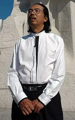 ![]() Lei Yixin standing in front of his sculpture Stone of Hope at the Martin Luther King Jr. Memorial | |