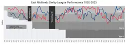 The fixture between Nottingham Forest and Leicester City is a football rivalry played between the two East Midlands clubs, often referred to as an East Midlands derby.[1][2] There have been a total of 111 meetings dating back to 1901 as of 11 May 2025.[3]