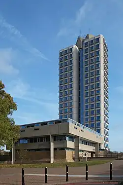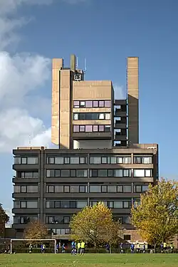 The Engineering Building was the first major building by British architects James Stirling and James Gowan. This Grade II* listed building[23] comprises workshops and laboratories at ground level, and a tower containing offices and lecture theatres.