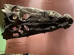 Leidyosuchus (meaning "Leidy's crocodile") is an extinct genus of eusuchian, either an alligatoroid crocodilian or a stem-group crocodilian, from the Late Cretaceous of Alberta. It was named in 1907 by Lawrence Lambe, and the type species is L. canadensis.[2] It is known from a number of specimens from the middle Campanian age Dinosaur Park Formation. It was a medium-sized alligatoroid, with a maximum skull length greater than 40 centimeters (16 in).[3]