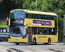 In February 2019, TfGM were successful in bidding for funding support in buying an additional 10 electric buses for busway operation, to enter service in March 2020.[26] These are Alexander Dennis Enviro400 MMC double-deckers with BYD Company battery power. TfGM intend that eventually all Vantage services will be operated by electric buses; to be purchased and owned by TfGM themselves, rather than by the service operator. Five of the existing fleet of Volvo B5LH buses were be transferred to other services in Greater Manchester; and so total busway-equipped fleet increased to 30, allowing extra daytime frequency on V1 services from Leigh. But that never happened.[27]