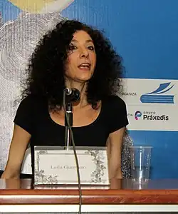 Leila Guerriero was born to a Syrian father and a German mother.[1] She graduated from the Colegio Nacional Normal Superior de Junín. She studied tourism, a field in which she did not end up working. Her empirical start in journalism was in 1992 when she got her first job as editor at Página/30, a monthly magazine of the newspaper Página/12. After sending a story entitled "Kilómetro cero" to the paper's reception desk, she received, four days later, a call from the then director Jorge Lanata.[2]