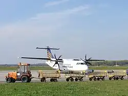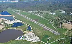 Leipzig–Altenburg Airport (IATA: AOC, ICAO: EDAC) (known as Altenburg–Nobitz Airport until February 2008) is a German regional airport in Nobitz, 6 km (3.7 mi) southeast of Altenburg and 42 km (26 mi) south of Leipzig, in the state of Thuringia. It was the second largest airport in Thuringia after Erfurt-Weimar Airport when it had scheduled traffic. In 2007, it served almost 140,000 passengers. All scheduled services ceased in 2011.