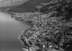 The traditional economy of the village was closely tied to the lake. Many of the villagers were fishermen or boat builders while others farmed the narrow margin between the lake and the mountains. That began to change in 1780 when a spa was built around mineral springs on the lake shore. The springs dried up in 1873, but a small tourist industry was established in the village. In 1887 a dock was built for the steam ships which transported people and goods across the lake. Today most of the jobs in the village are in small industry, small businesses or summer tourism. About two-thirds of the working population commute to jobs in nearby Interlaken or to the city of Bern.[3]
